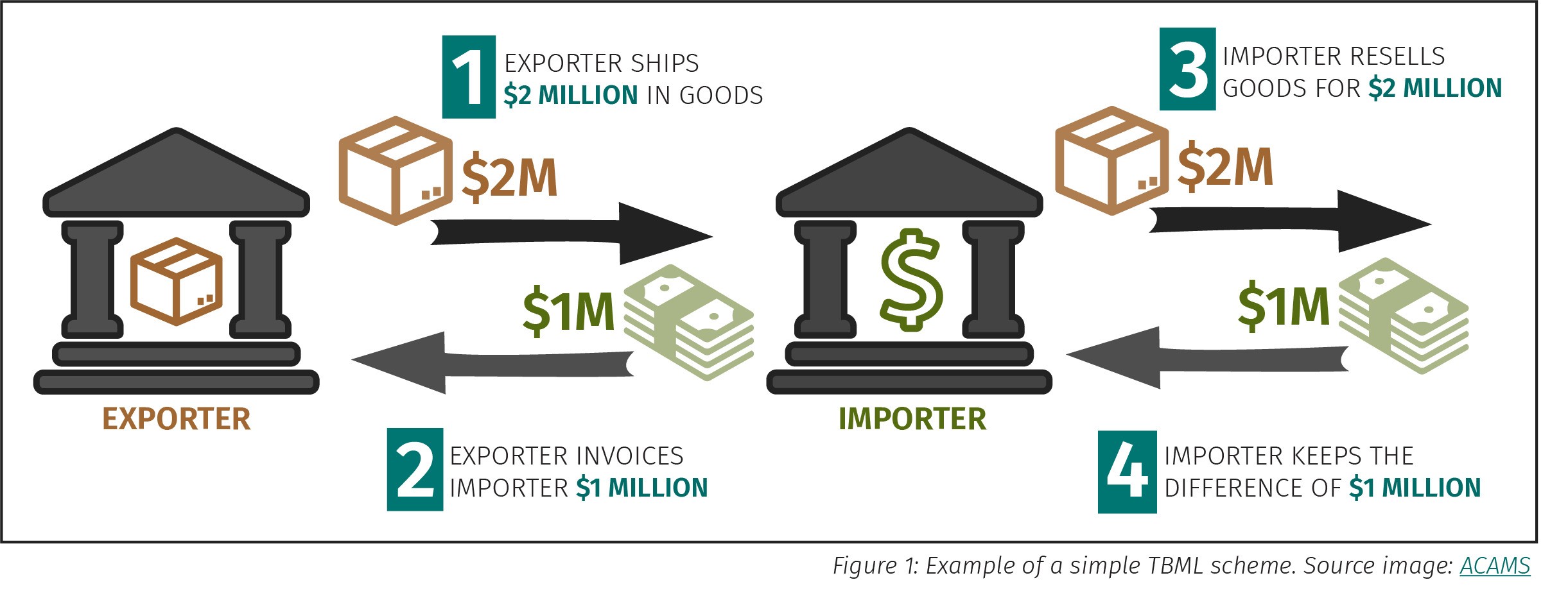(Foto: Esempio di uno schema semplice di riciclaggio basato sul commercio [TBML])